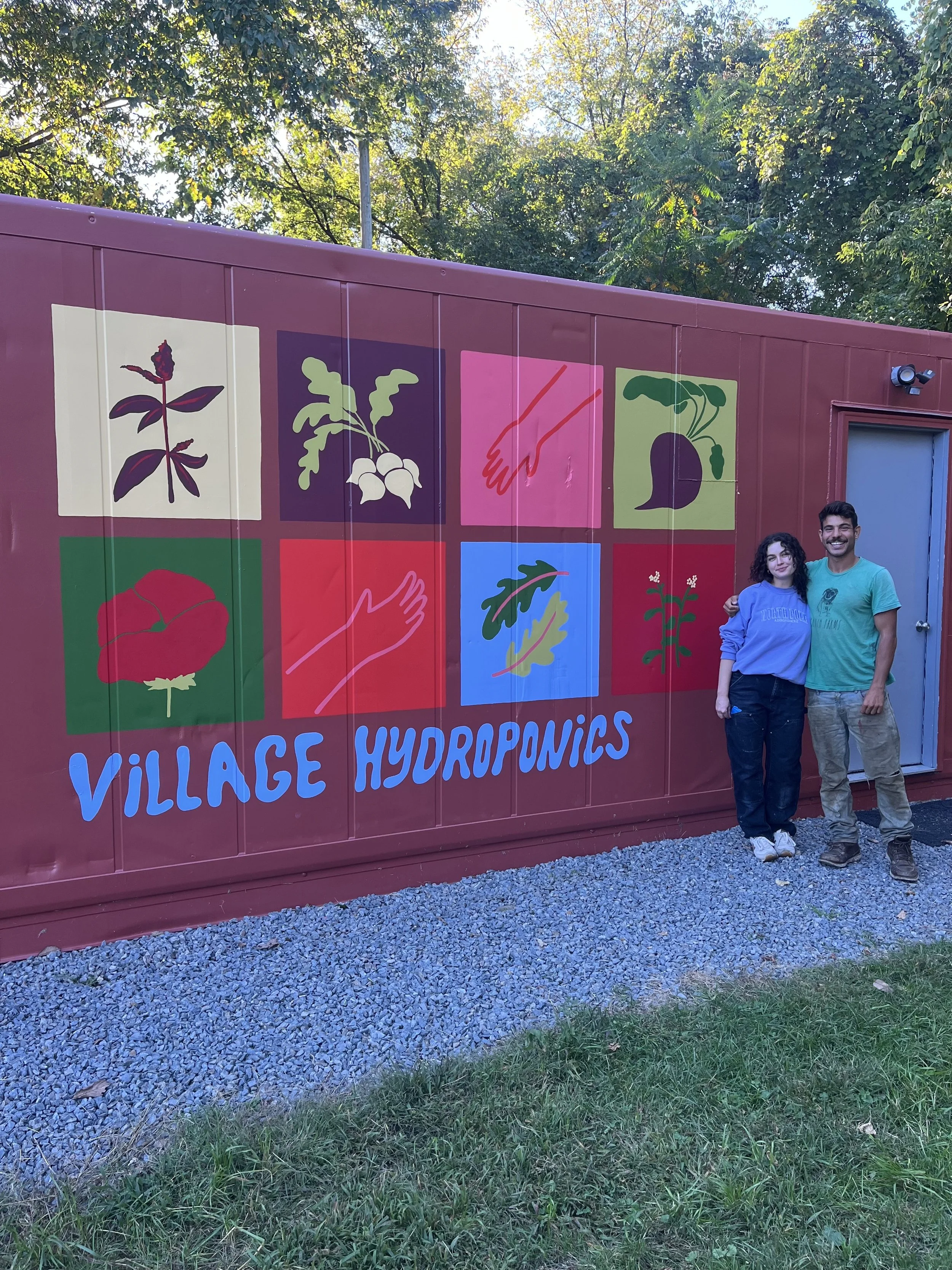 Last summer I painted a mural on a shipping container in Burlington VT for Village Hydroponics, a small hydroponics farm prioritizing food justice and community access to good food, year round. Nour El-Naboulsi, the Executive Director, gave me the direction to include culturally diverse foods, illustrating foods recognizable to Burlington’s new Americans. This project was so meaningful, not only was I enjoying time outdoors doing what I love, I was adding art to an already vibrant community and supporting friends doing important work and advocacy.