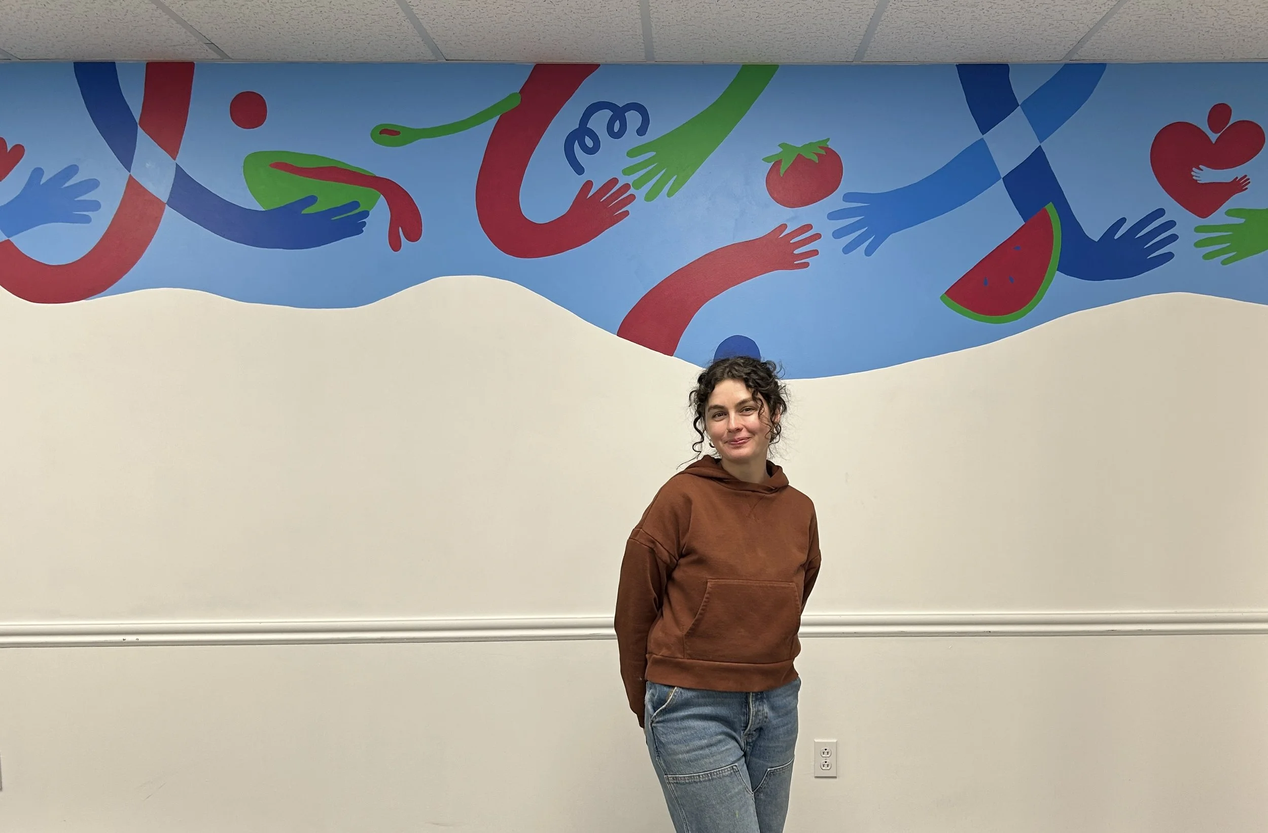 This is a mural I recently finished at the JCEO Food Bank in downtown Plattsburgh. The concept for this design was community and creating a warm and inviting space for folks. Being able to help this vital community organization create a space that felt comfortable and less clinical was an exciting prospect. Stylistically I love hands and food, this design was a fun combination of the two.