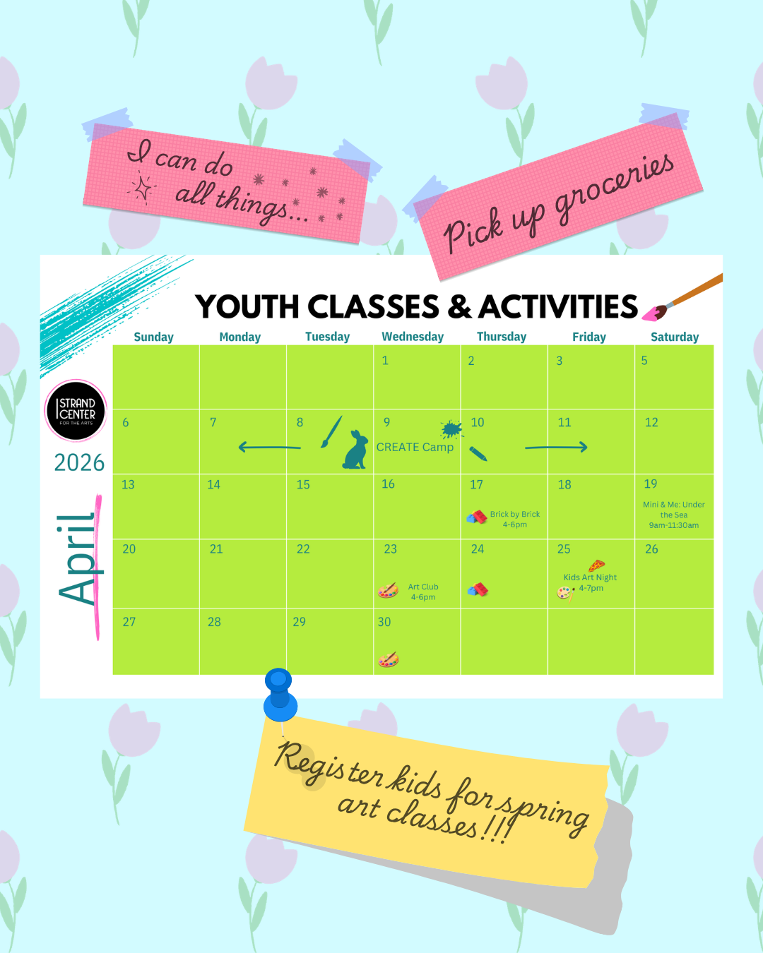 Strand Center for the Arts offers a wide variety of youth classes, camps and workshops. Let us know if you’d like to receive the Youth Newsletter by emailing youth@strandcenter.org. Stay up to date on ongoing/upcoming classes, events and more!